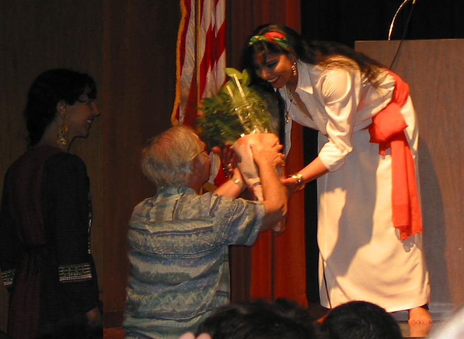 "Tito's show; Sept 2008" DVD: $30 For those of you who witnessed this fabulous evening of dance fun, here's your memory of it. If you missed the show, it's not too late, you can experience it on DVD! Tito dazzled the audience in three very diverse performances; Cane dance with 4 canes, mastering natural forces of balance and centrifugal forces, a duet with Hala and his grand finale performance where the audience didn't stop screaming in awe; including his veil & cane choreography which he taught at the Sat workshop, dancing on the Tabla and much more. The evening also included master performances by notable teachers and dancers including Astryd, Shoshanna, Haifa Wahab & more... Video Clip preview:Tito & Hala duet Audience Comment: "Hala and Tito make a beautiful stage duo, and their dance captured on film is a prime example of authentic Egyptian duet style. They interpret the song, and they dance a conversation, he proposing, she commenting. Neither copies the other exactly, but each paraphrases the other. It's apparent that the dance has been choreographed, but there's also a delightful improvisatory feel to it, a casual ease like a light-hearted conversation at a party. All of their fluidly graceful, undulating movements flow from the center, like incessantly bubbling lava inside a volcano. Their gestures are softly connected, originating from the torso. This is the kind of dancing I aspire to, and I watch Hala's videos for inspiration" Shauna Pickett-Gordon |